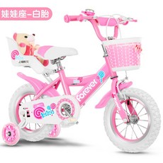 4발자전거 어린이 여아 여자 7살 자전거, 화이트 휠 + 곰 인형 포켓_16 인치