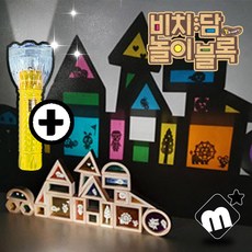 비치담 놀이블록32p+스티커북+후레쉬 야광스티커 어린이손전등 그림자놀이 고급원목 쌓기블럭 장난감, 단품