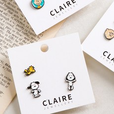 클레어쥬얼리 스누피 점프 3pcs 애니메이션 캐릭터 알러지없는 은침 (925실버) 귀걸이