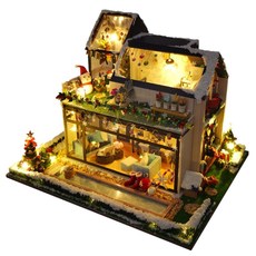 풍경 생일 연인을위한 LED가있는 음악이있는 DIY 인형 집 세트, 31×25×22.6cm, 목재, 여러 가지 빛깔의