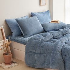 프리미엄 모노 극세사 차렵 이불 두꺼운 겨울 침구 세트, 모노_블루