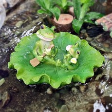 플로팅 연잎 개구리 형제 / 정원 수반 미니 연못 장식 인형 소품