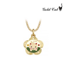 골드캣 14k 돼지 플라워컷팅 미아방지 목걸이_CH1036_각인서비스