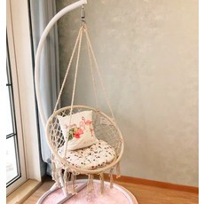 마크라메 그네의자 해먹의자 가정용 실내 베란다 감성캠핑, 베이지해먹+곡선 브래킷
