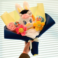 인형 꽃다발 셀프포장 리코 학사모 졸업 만들기 입학식 발렌타인 하트 기념 생일 파티, 리코 학사모(가방고리), 포장지(핑크), 롤리팝