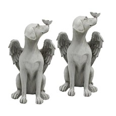 동상이있는 2x 천사 애완 동물 나비 수지 정원 장식으로 노는 슈퍼 귀여운 강아지 집 뒤뜰을위한 기념 공물 조각, 회색 + 그레이