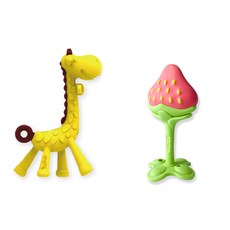 앙쥬 치발기 기린 + 3D 딸기 세트, 혼합색상