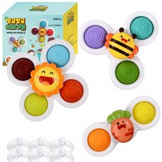 [행운이네] 빙글빙글해피가든 흡착식 회전장난감 3개 세트 목욕놀이 완구 꿀벌 당근 햇님 회전스피너