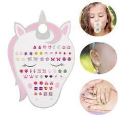 에브리띵_by블루 네일스티커 귀걸이스티커 유아동반지 선물세트 선물포장 선물박스 포함 구성, 여우상자+귀걸이(유니콘)+귀걸이(유니콘)
