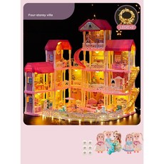 [미미사몰] 소꿉놀이 어린이날 집콕 인형 놀이 장난감 공주집 빌라성 여아동 생일 선물, E형 대형 별장+조명집