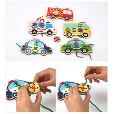 유아 소근육 두뇌발달 교통 자동차실꿰기 원목교구 바느질교구 교구