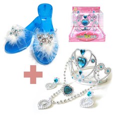 [모퉁이샵] 겨울왕국 겨울여왕 공주 프린세스 왕관 목걸이 귀걸이 반지 + 러블리 블링 유리구두/크리스마스 어린이집 유치원 여자아이생일선물 단체선물 생일답례품 역할놀이완구, 프린세스 왕관세트 + 공주구두(핑크)