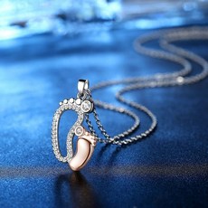 지르콘 크리스탈 러블리 피트 펜던트 목걸이 엄마 아기 어머니의 날 선물 쥬얼리 어머니 아이 발 실버 체인 로켓 목걸이|펜던트 목걸이|