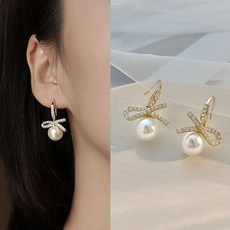 춘게엘 큐빅 은침 리본 진주 귀걸이 wdn7008