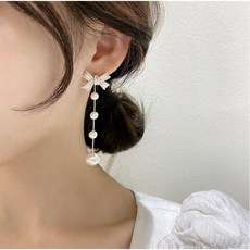 영블리 YJE552 리본 진주 4단 드롭 투웨이 귀걸이