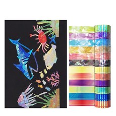 신우 홀로그램 모자이크 아트 마스킹테이프 키트 테이프24개+도안12장, 혼합색상