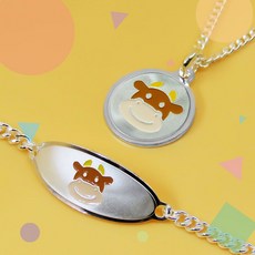 엔틱무광 실버 소띠 아기 송아지 페이스 미아방지 은목걸이 팔찌, 무광 송아지페이스 팔찌