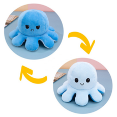 양면 문어 봉제인형 미소+분노 말없이 기분전환!, 라이트 블루 + 다크 블루, 40cm