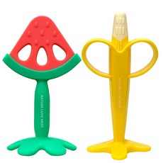 네이쳐러브메레 츄어블 실리콘 과일 아기 치발기 2종세트, 노꼭지, 수박 + 바나나