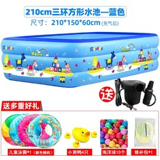 인덱스 가정용수영장 전원 주택 마당 베란다 옥상 간이 튜브 풀장 이동식 에어바운스 에어풀, 210 파란색 표준 분배 펌프