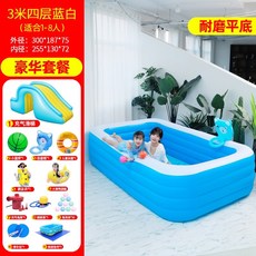인덱스 가정용수영장 전원 주택 마당 베란다 옥상 간이 튜브 풀장 이동식 에어바운스 에어풀, 3m 4층 – 럭셔리 패키지 슬라이드