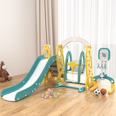 [무료 배송/무상 AS/사용 상담지원]EKASN 안정무해 친환경 재료 미끄럼틀 그네농구바구니세트 놀이공원 세트 집 용/유치원용 보호 디자인, 미끄럼틀+그네+농구축구 바구 세트