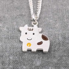 세방쥬얼리 엔틱무광 소띠 얼룩 송아지 가족 실버 미아방지 목걸이팔찌, 목걸이