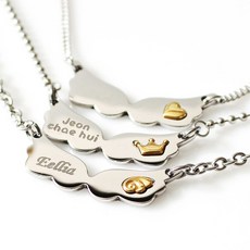 써지컬스틸 미아방지목걸이 날개 실버드롭장식, 날개+천사날개(골드), 커브, 7세이상:38+여유3