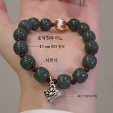 YY자연 10Mm Hetian 옥 옥 오래된 구슬 팔찌 여성 스털링 실버 호랑이 머리 펜던트 복고풍 간단한 싱글 서클 팔찌