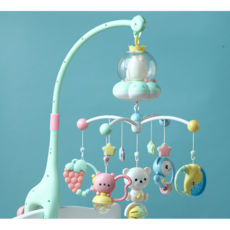 BAICHENG 아기노리 유아침대용 키다리 동물 모빌대 노래, 태반음+자장가 20곡, 초록색