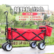 야외 피크닉 캠핑카트 캠핑웨건 유아용웨건 쇼핑 장바구니 카트 트롤리 접이식 이동식 휴대용 웨건, 오프로드 휠 + 안전 벨트 레드 + 아이스 포켓