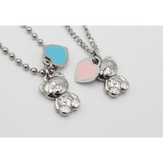 [키즈포유] 알러지없는 써지컬스틸 파니베어 미아방지 목걸이, 핑크, 고방체인, 아동용(38cm+3.5cm)