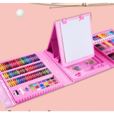 GLINWO 어린이 미술도구 176개 풀세트 색연필 색칠공부 그림그리기 어린이날선물 아트세트, 핑크