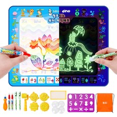 헬로디노 [업그레이드 버전] 워터매직매트 & 야광 매직드로잉 보드 2 IN 1 색칠공부 엄마표 오감 미술놀이 매트