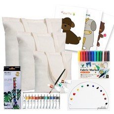 쏘즐 에코백 만들기 꾸미기 DIY키트 네임펜+물감 풀세트 실내미술놀이 아동미술 어린이선물 집콕미술키트 어린이집미술재료 무지에코백 만들기키트 엄마표미술놀이 유아미술놀이 미술놀이세, 소, 패브릭마카+물감