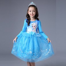 아이스쿨 [당일발송] 로맨틱 러블리 긴팔 엘사드레스 (엘사4종세트 왕관 요술봉 귀걸이 반지 증정)