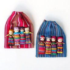 로맨틱노벰버 과테말라 프렌드쉽 걱정인형 4P + 주머니 2세트, 5.5cm, 혼합 색상