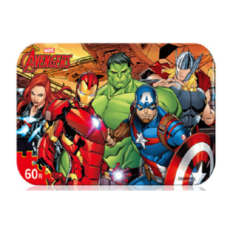 마블 어벤져스 틴케이스 그림퍼즐 캡틴아메리카 스파이더맨 아이언맨 헐크 토르 히어로 영웅 캐릭터 퍼즐 60피스 pcs 휴대용 어린이 유아 아동 쉬운 직소퍼즐, B