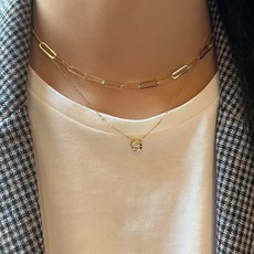 다이아모어 14K 18K 두꺼운 만자 클립체인 레이어드 초커 김나영 목걸이