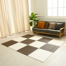 PE 퍼즐매트 4p + 테두리 마감재 8p, 브라운, 아이보리