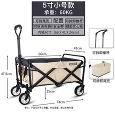 캠핑 웨건 접이식 짐수레 카트 폴딩 트레일러 트롤리, 베이지