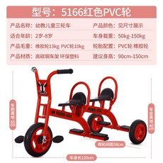 튼튼한 철재 프레임 아동 자녀 1인승 2인승 어린이집용 세발 자전거 함께 타기, 5166PVC휠레드