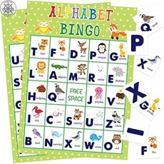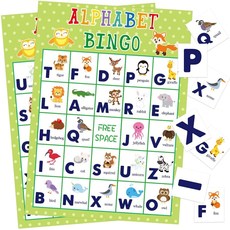 어린이 24명용 알파벳 빙고 게임 동물 편지 학습 게임 학교 교실 생일 파티용품:, 단일옵션