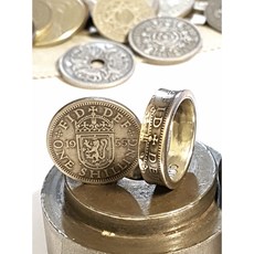 행운의 동전반지 영국왕관1실링 은 패션 큰 디자인 남성 여자 커플 제작 이니셜 주문 우정 제작 링 만들기 남자
