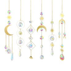 홈 웨딩 크리스마스 장식을위한 체인 프리즘이있는 6Pcs 크리스탈 펜던트 레인보우 메이커, 여러 가지 빛깔의, 결정