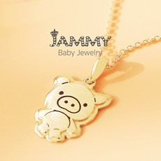 14K 아기 복덩이 돼지띠 목걸이 돌 선물 미아방지 백일, 화이트골드