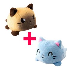 1+1 반전매력 양면 고양이 냥이인형 애착인형, (블루블루 냥이 1개 +베이지 모찌 샴 냥이 1개)