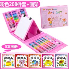 슈퍼메가아트세트 크레파스세트208종 학교학원 크레용크레파스미술시간준비물, 그림 208장 세트 [ 그릴 핑크] 5권 컬러링북개