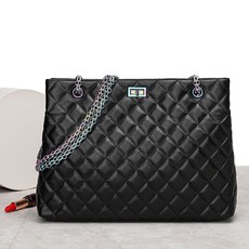퀼트와이드숄더백 큰사이즈 여성 무스탕 양가죽 체인 어깨끈 스윗 퀼팅 스퀘어 토트 비스듬함 메다 2022 가죽가방