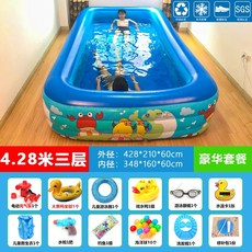 인덱스 가정용수영장 전원 주택 마당 베란다 옥상 간이 튜브 풀장 이동식 에어바운스 에어풀, 초대형 4.28m 3층 럭셔리 패키지